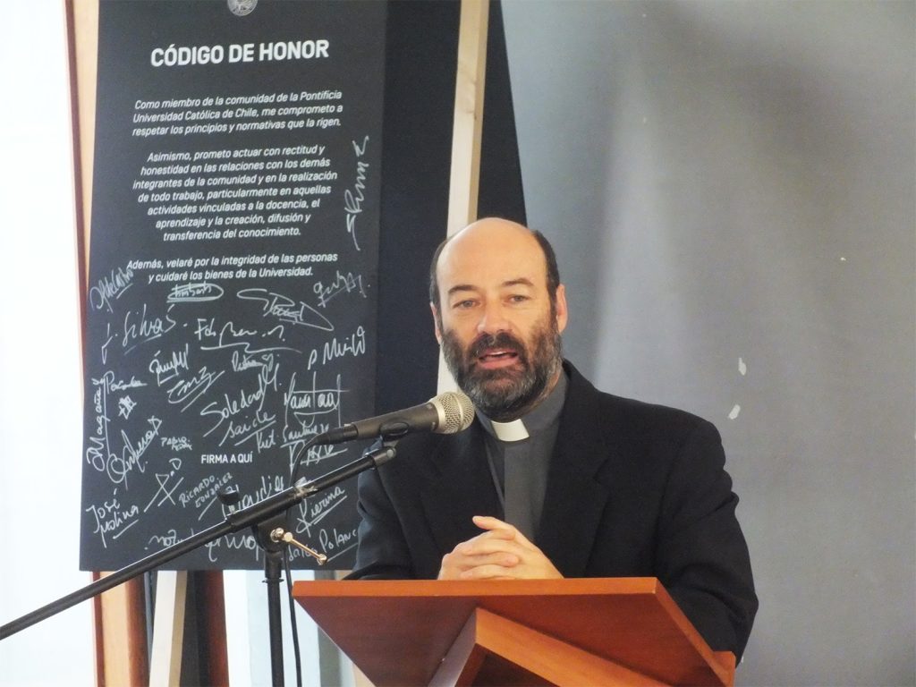 El decano Joaquín Silva encabezó una ceremonia donde se invitó a los nuevos estudiantes a enfrentar este camino con mucha gratitud y responsabilidad, disfrutando el estudiar la teología.