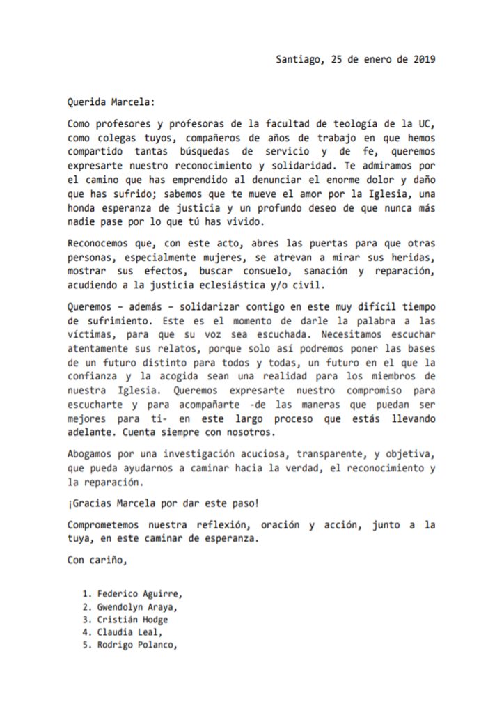 Carta abierta de académicos de Teología UC a Marcela Aranda.