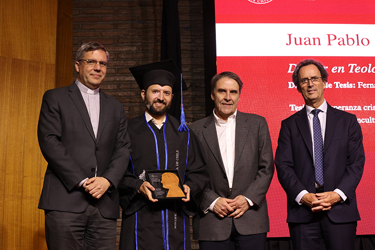 En este marco, el académico Juan Pablo Sepúlveda, de la Facultad de Teología UC, recibió el Premio Cardenal Newman, reconocimiento que distingue investigaciones doctorales que ponen en diálogo la disciplina académica con la fe cristiana, aportando significativamente a la misión de la universidad de evangelizar la cultura.