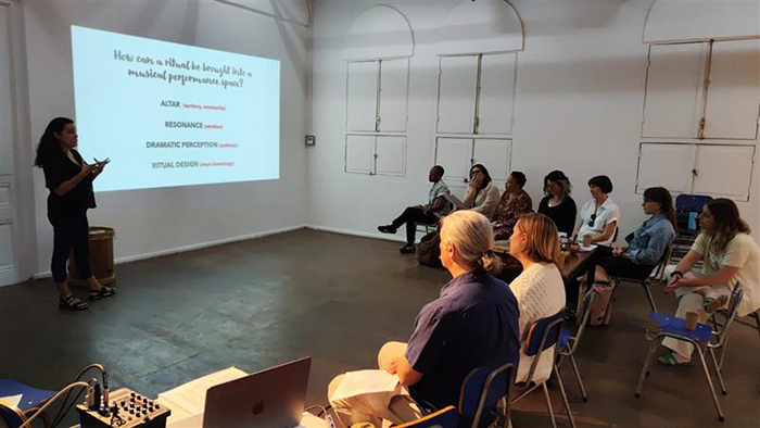 La reflexión sobre el tipo de conocimiento que habilitan la teología y el arte atravesó la discusión. Lexi Eikelboom (Australian Catholic University) destacó dos ideas fuerza del workshop: “La teología no consiste en reducir la información, sino en abrirnos a tantos tipos de experiencias e información como podamos incluir, porque trata sobre el mundo entero. Y el arte también trata sobre el mundo entero, incorporando todos los datos sensoriales posibles”. Agregó que una clave aprendida en diálogo con colegas de la UC fue “ofrecer el arte como un acto de devoción: no solo algo que se exhibe, sino un regalo a los demás, al mundo o a lo divino mismo”.