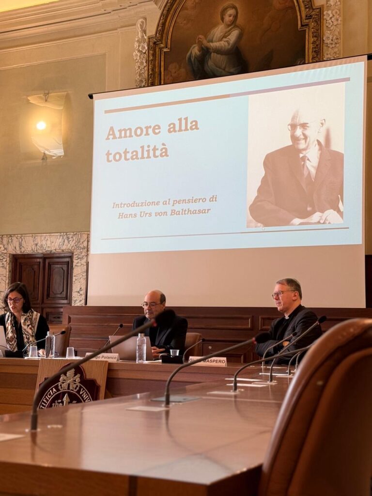Durante el diálogo, Polanco expuso el itinerario intelectual que sostiene el proyecto: más de una década de estudio sistemático de la monumental obra balthasariana, que cristalizó en dos volúmenes en español. La nueva edición en italiano comienza con este primer tomo, Amore alla totalità, una reedición ampliada que incorpora tres capítulos inéditos para completar la introducción: sitúa a Balthasar en la teología del siglo XX y desarrolla explícitamente el lugar de la literatura y la filosofía en su sistema.