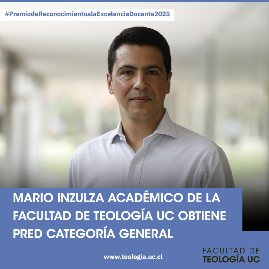 La Facultad de Teología de la Pontificia Universidad Católica de Chile celebró con orgullo la adjudicación del Premio de Reconocimiento a la Excelencia Docente (PRED) 2025, otorgado a los académicos Mario Inzulza González, en la categoría General, y Pablo Arteaga Echeverría, en la categoría Iniciación. La distinción, entregada anualmente por la Vicerrectoría Académica, reconoce a docentes que destacan por su dedicación, calidad metodológica y compromiso con el aprendizaje de sus estudiantes.