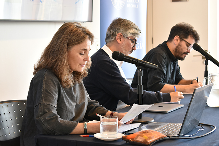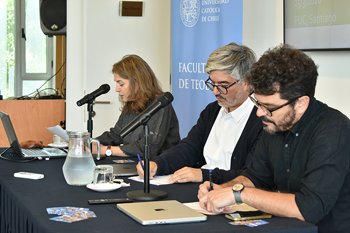 La actividad fue moderada por el historiador Rafael Gaune (Instituto de Historia UC) y contó con las exposiciones de Silvia Mostaccio, académica de la Universidad Católica de Lovaina, y Carlos Álvarez, profesor de la Facultad de Teología UC.